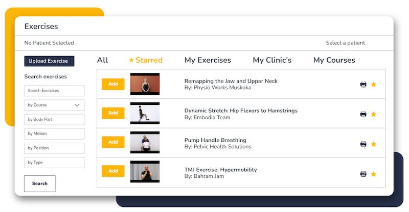Share educational content with your patients that support what they learned in session. Select from Embodia’s library, including content from top clinical instructors, or upload your own. Create text, image, or video-based educational content!
